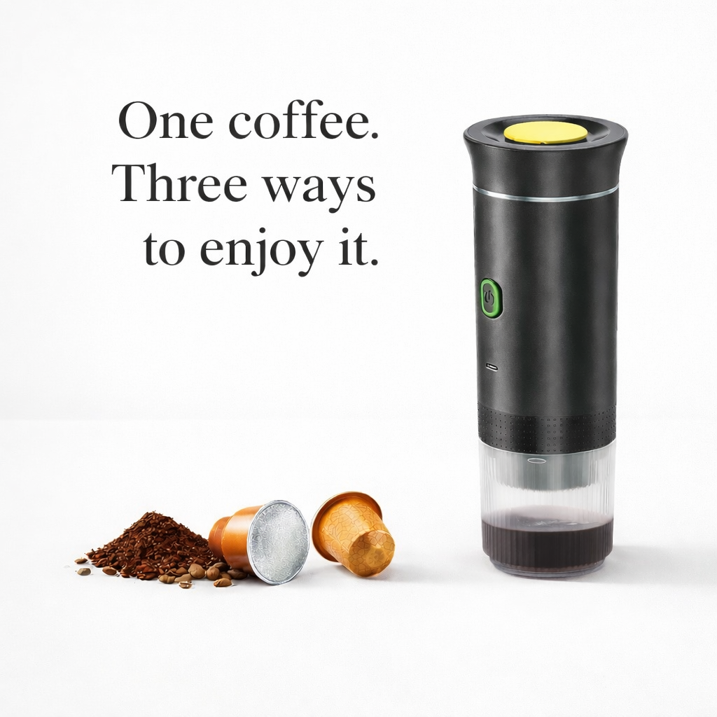 We introduce our 3-in-1 portable coffee maker, designed for those who want convenience, freedom, and great taste — without complications.